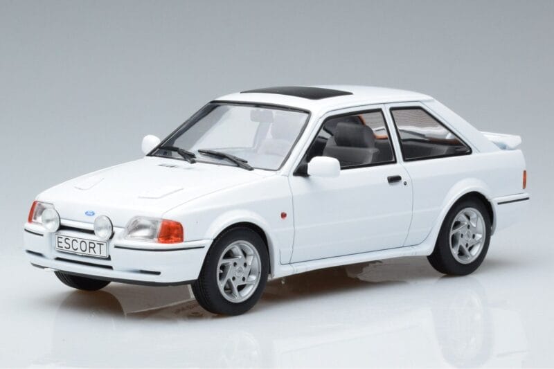 The Ford Escort Mk4 RS Turbo S Бял MCG 1:18 is crafted from Метал. Die-cast zinc alloy body with detailed plastic parts, rubber tires, and high-quality paint finish. Die-cast models are known for their weight, durability, and realistic feel.