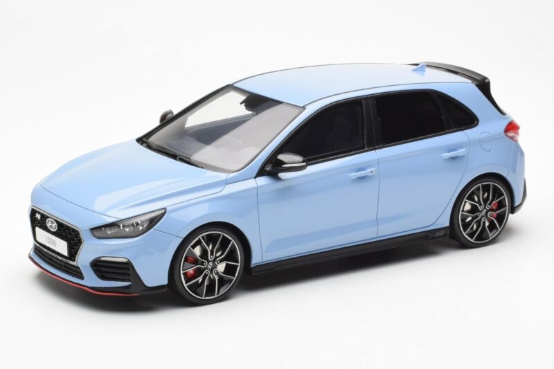A 1:18 scale model measures approximately 25-28 cm (approximately 10-11 inches). The Hyundai i30 N Светлосин Otto 1:18 is perfect for display in a glass cabinet or on a shelf.