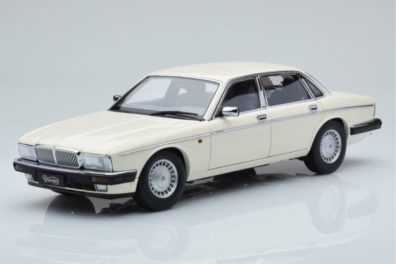The Jaguar XJ6 XJ40 Glacier Бял Almost Real 1:18 is crafted from Метал. Die-cast zinc alloy body with detailed plastic parts, rubber tires, and high-quality paint finish. Die-cast models are known for their weight, durability, and realistic feel.