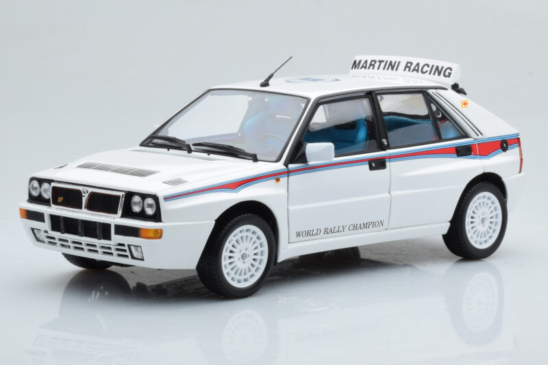 The Lancia Delta HF Integrale 6 Бял Kyosho 1:18 is crafted from Метал. Die-cast zinc alloy body with detailed plastic parts, rubber tires, and high-quality paint finish. Die-cast models are known for their weight, durability, and realistic feel.